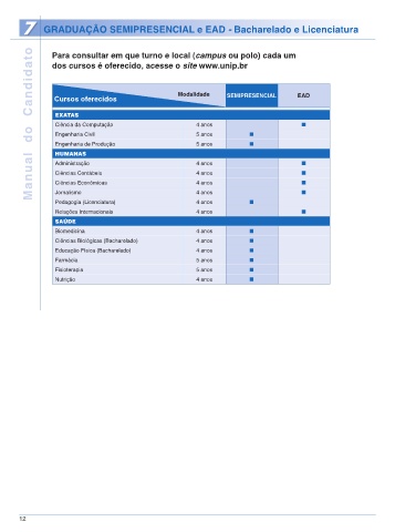 Page 12 - Manual do Candidato | Vestibular 2026/1 - Brasília, Goiânia e Manaus | Universidade Paulista